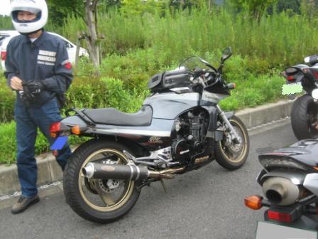 右の写真は回初参加(?たぶん)のGSX−R K4に乗る脇本さん。 右下がGPZ900の三谷さん、と下がZRX1100の揚野さんです。 それに、主催のアイスエイジさん、オパミン、Ryo@Mさん、R1の山口さん、VFRの宮本さんと自分の9台です。 |