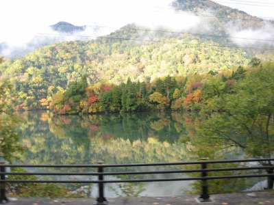 7:16 早朝の湯ノ湖 朝食前に、少し車を走らせて、湯ノ湖へ。 標高1,500mにある湯ノ湖の朝の空気は引き締まって、紅葉を湖面に写していました。 |