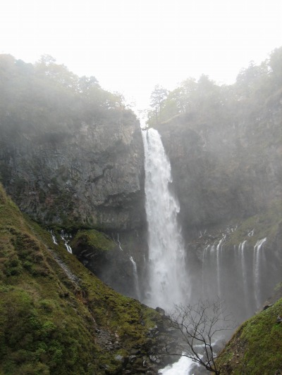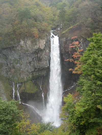 12:15 華厳の滝 中禅寺湖から華厳の滝にやってきました。 昨日は霧(雲)の中に埋もれていた滝も今日は姿を現していました。 この華厳の滝、例年より水量が多いそうです。 |