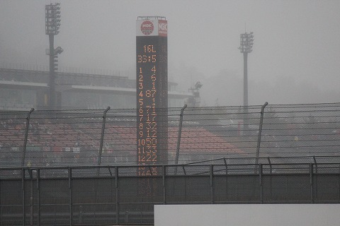 16:09 レース終了 16周にわたるJSBのレースが終了しました。 結局レース中は雨が止むことは一時もありませんでした。 気温も5℃、路面温度も10℃程度で寒さの中でのレースでした。 |