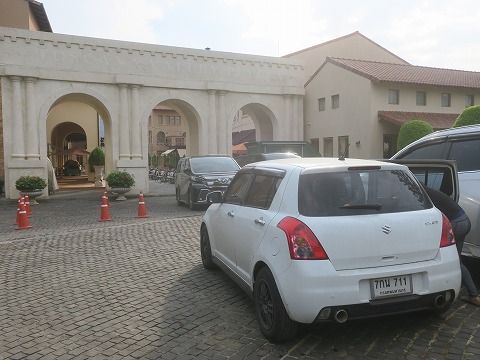 16:06 TOSCANA VALLEY は 入口にゲートがあって、不用の人は入れないようです。 ちょっと脇にクルマを駐めて、嫁さんは中に入る手段を調べます。 TOSCANA VALLEY は高級住宅街(別荘地)とホテル、ゴルフコースや飲食店が一体となって開発されたリゾート地の様です。 名前のTOSCANAからもわかるように、全体的にイタリアのトスカーナ地方をイメージしてデザインされているようです。 嫁さんの話だと、別荘地と言うより仕事でたまにバンコクに行けば用事が済むような富裕層が多く住んでいるそうです。 なので、セキュリティーのため、不用な人は中に入れません。 |