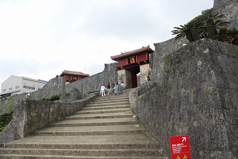 14:43 園比屋武御嶽石門(そのひゃんうたきいしもん) 歓会門の手前、横にあった”園比屋武御嶽石門”。(読みづらい) 1519年に建てられたらしく、第二次世界大戦では一部が破壊されたそうですが、復元。 2000年に世界遺産に登録されたそうです。 |