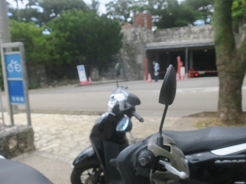 14:38 首里城公園へ なんて国道58号線を南下していたら、目に飛び込んできたのが”首里城公園”の看板。 時間があったら、訪れてみようかな。と思っていたので、寄ってみることにします。 首里城公園のある駐車場へ。 広くはありませんがバイクの駐輪スペースが確保されていて無料。(^_^)v 駐めます。 |