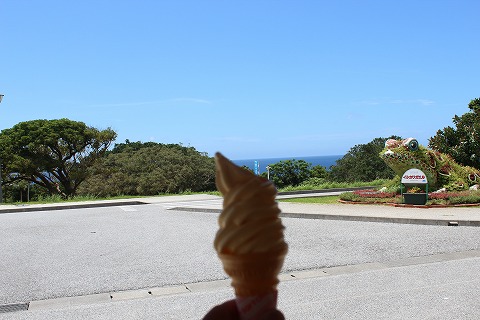 14:16 駐輪場に戻る ソフトクリームを食べた後、駐輪場まで戻ってきました。 この炎天下にスクータで来ている猛者がもう一人いましたね。(笑) それでは、那覇に戻りつつお昼が食べられるお店を探しましょう。 (つづく) |