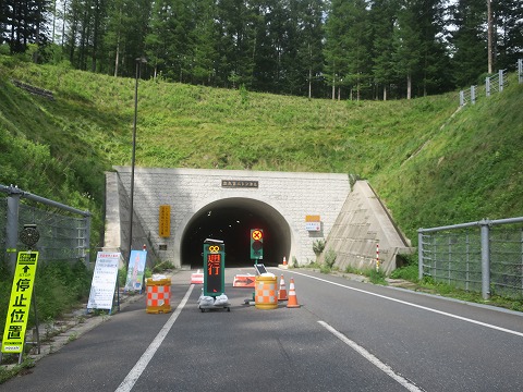 15:05 トンネル内は湿気で 押角峠直下に建設された押角トンネルを走行中。 押角トンネルの延長はおおよそ3kmほど。 このトンネルの様に、延長が長いトンネル内は中がヒンヤリして気持ちいいです。 交通量はほとんど無くて、トンネル内ですれ違ったクルマはありませんでした。 退屈なのでデジカメを出して写してみましたが、この時期延長の長いトンネル内は湿気で路面はビチャビチャです。 飛ばしすぎると、滑ることもあるので注意しながらアクセルを開けていきます。 押角トンネルを出るともう路面の濡れているところはありませんでした。 |
