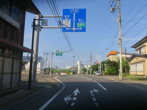 16:38 南郷ICから 国道340号線から道路看板に従い、右折して青森県道42号名川階上線(ながわ はしかみ せん)に入り1km弱東進し、南郷ICまでやってきました。 南郷ICから八戸自動車道に上がり、八戸北ICまで北上し、八戸の市街地をパスします。 |