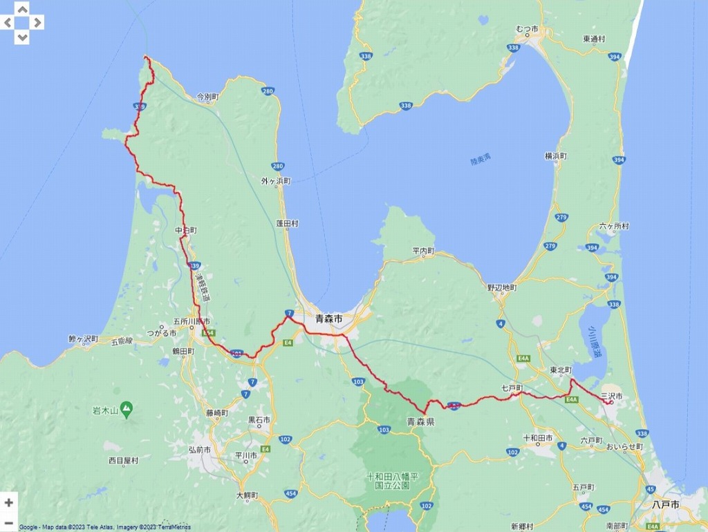| 午後の道程:竜飛岬〜五所川原市〜青森市〜八甲田〜七戸〜三沢 :177.22km | |