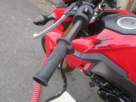 11:32 動作を確認 接続が出来たので、動作確認。 メインキーをオンにすると、グリップヒータのランプが点灯することを確認。 キーをオフにすると消灯を確認。 メインキーと連動してますね。 OKです。 |