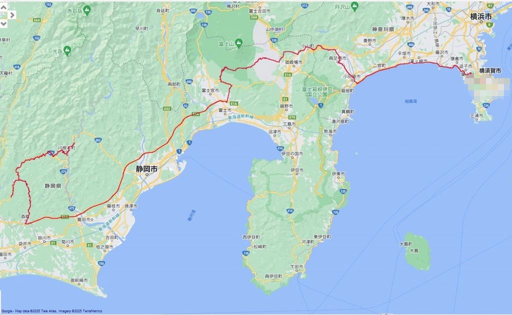 | 午後の道程: 川根本町 ~ 浜松市横川 ~ 森掛川 IC ~ 新富士 IC ~ 裾野市 ~ 御殿場市 ~ 南足柄市 ~ 横須賀(自宅) : 304.17 km | |