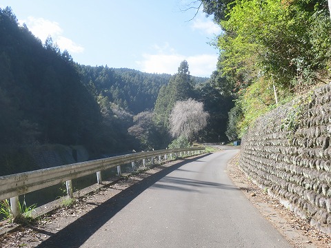 12:57 杉川沿いに センタラインのある区間をしばし走ると、ふたたびセンタラインなしの1.5車線の区間に。 右手に流れているのは天竜川の支流の杉川。 周囲には、時期的にちょっと早い様ですが、紅葉している木も見られます。 この辺りは、景色を眺めて走るのも良し、走りに集中するも良し、の区間です。 |