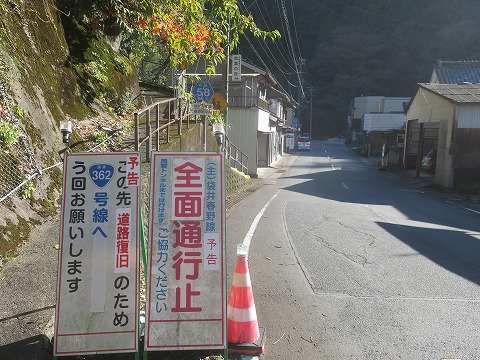通行止め この先の国道362号線は下長尾地区で2024年6月の豪雨により道路が崩れたため通行止めが継続中。 2023年10月にMAOHさんとツーリングをした時も通行止めでした。 ここは、大雨に弱い区間ですね。 |