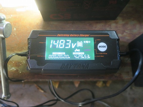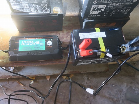 16:00 充電完了 夕方まで充電して、充電完了。 完了時の電圧は、受電前よりちょっと上がって13.12V。 後ろに使えないバッテリーとか、使えるバッテリーが貯まりましたね。(笑) |