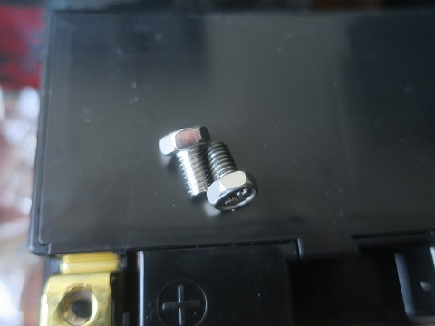 16:4 ネジは ターミナルに止めるためのネジ。 右が古くて、左が同梱されていたもの。 長さを比べたら、同じだったので新品を使うことにします。 |