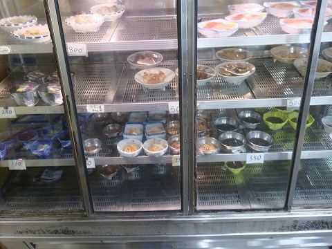 12:16 ウィンドウの中の たら汁が供されるまで、ガラスウィンドウの中の料理をのぞいてみます。 美味しそうな一品料理が並んでいます。 |