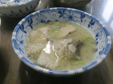 12:36 味噌仕立て タラ汁は、薄めの味噌仕立て。 まるまるブツ切りにされたたらは結構脂分があるんですね。 その脂分がみそ仕立ての汁に混ざって旨いんでしょうね。 たらって淡白なサカナのイメージがありましたが、さっぱりとした脂分が美味さのベースになっているみたいです。 ブツ切りのたらは骨も付いているので、注意です。 骨は結構しっかりしているので、太いの飲み込んじゃうと、喉に引っかかりますよ。(笑) |