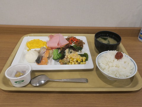 7:22 朝食を 準備ができたらそそくさと朝食を食べます。 久しぶりのルートインのブッフェ朝食。 可もなく不可もなく。 納豆は押さえておきたい。(笑) |