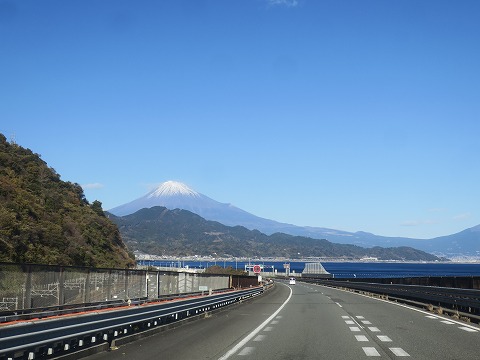 14:02 富士山が見えると 小笠PAで昼食を食べた後軽く昼寝をして、引き続き東名高速を東進、由比まで戻ってきました。 薩埵峠下のトンネルを抜けると目の前に富士山が現れます。 富士山が見えるようになると、地元に戻ってきた感じになります。。 自宅まではもう一息です。 |