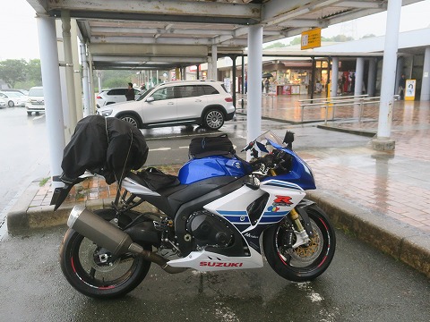 13:06 熊本市を発つ GWツーリング後半の6日目です。 今日の晩には北九州の新門司港からフェリーに乗って横須賀に帰ります。 朝から雨が降っているので、ホテルをレイトチェックアウトして、昼に駅近くで熊本ラーメンを食べて、GSX-Rが駐めてあるホテルの駐車場まで戻ってきました。 それでは、雨はあきらめて出発しましょう。 |