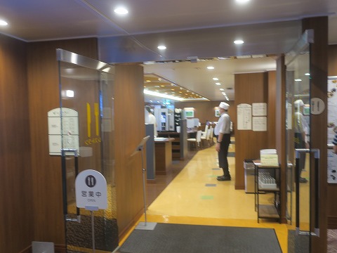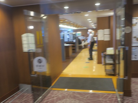 8:34 朝食を食べに 小一時間寝ると目が覚めました。 歳を取った影響か、浅い朝寝しかできなくなりました。 船内放送でレストランの朝食は9時までとアナウンスがありましたので、朝食を食べにいきます。 |