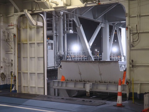 20:39 車両用の 船室の扉が開けられ、車両用のタラップが接続され様としています。 |
