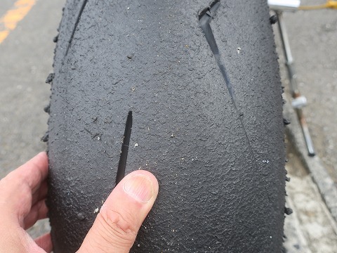 10:20 結構摩耗が早い リヤタイヤ側。 右側は端までほぼ使えているみたいです。 左側はもう一息ですが、筑波は左コーナーって1ヘアとアジアコーナーの2つ目くらいです。 アジアコーナーの2つ目は長々とバイクを寝かせている様なコーナーじゃなくて、なるべく早くバイクを起こしていくコーナーなので、ガッツリ寝かせるのは1ヘアピンだけになるかな。 さて、右側の中ぐらいのバンク角でアクセルを開けていく部分、もう溝が無くなりかけてますね。 このタイヤを入れ替えたのが、去年のエビスサーキットの走行会の後で、11月に40分走行、その後、12月に40分走行。 そして前回、5月にエビスサーキットの走行会を走って、今日筑波40分。 ちょっと摩耗が早いですね。 以前のversion3よりも早い感じです。 特に、エビスサーキットを走った時がダメージが大きい感じです。 これだと1シーズン2本以上使いそうな感じです。 タイヤの価格も値上がりしている昨今、年間2セット以上使うのは財布に厳しいです。 タイヤが滑るまで使いきってない自分としては、ブリヂストンのST600用のタイヤのR11でも良いのではないかと。 BSのR11はST600用のタイヤとして、入門者向けに耐久性を考慮したタイヤです。 この次のタイヤは、このR11を履いてみようか。 |