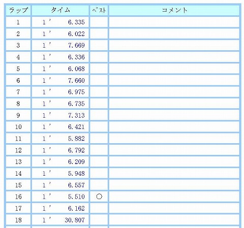 9:40〜10:00 B2クラス 2本目の走行が始まりました。 グラフを観ると、1本目より2本目の方が平均的にタイムがイイですね。 これはいつものことです。 月に1回くらい走るだけじゃ、やっぱり1本目からペースは上がらないですね。 それでも、オーバーホールしたエンジンの調子が良くて、全体的にトルクが厚くなった感じで、いつもよりペースがいい感じです。 シケインになるアジアコーナーの2つ目の立ち上がりでは、軽くフロントが浮いてきます。 これはオーバーホール前のエンジンより明らかです。 トルクがあって気持ちイイです。 ヘルメットの中でにやけています。 (^_^)v 前半はほぼコンスタントに6秒台で周回 後半になって、コースが空いてきたタイミングで5秒台が3回。 ベストはやっぱり終盤の16周目で5秒5。 1本目より1/100台ですが少しだけ更新できました。 17周目にチェッカーが振られて、ピットインします。 |