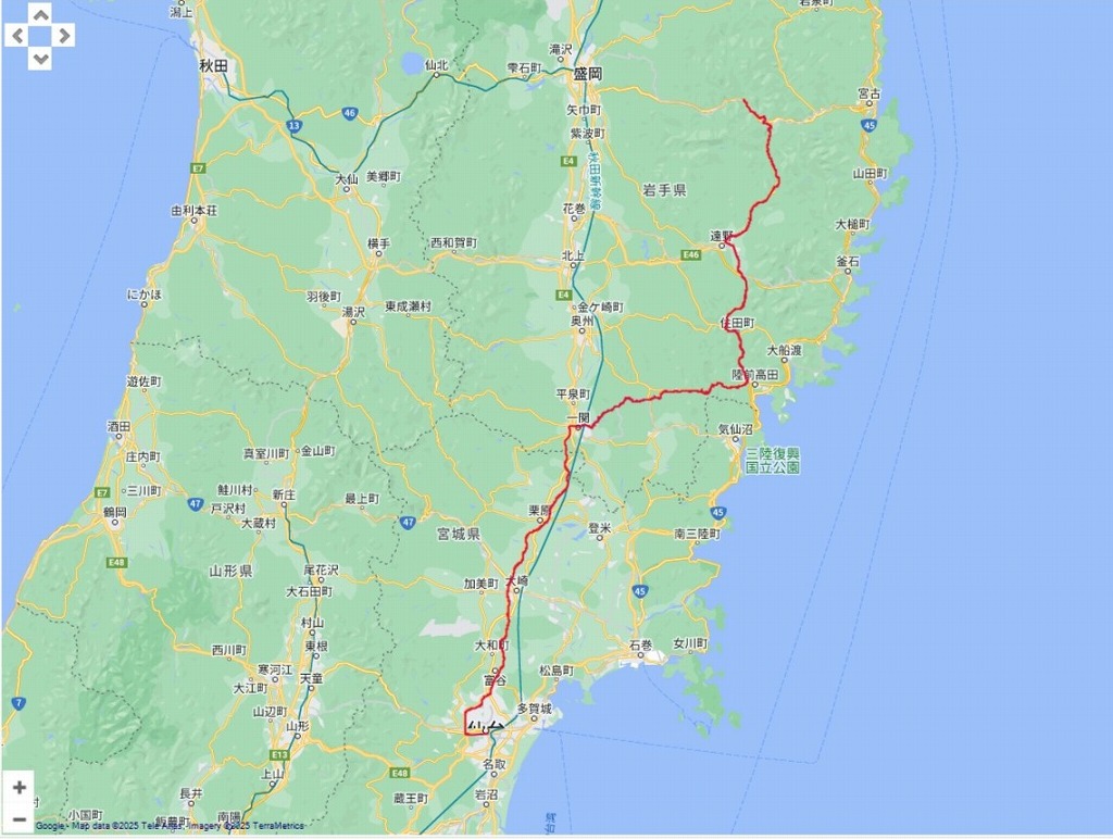 | 午後の道程:道の駅やまびこ館〜遠野〜陸前高田〜一関インター〜仙台:244.81km | |