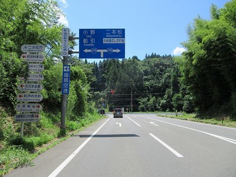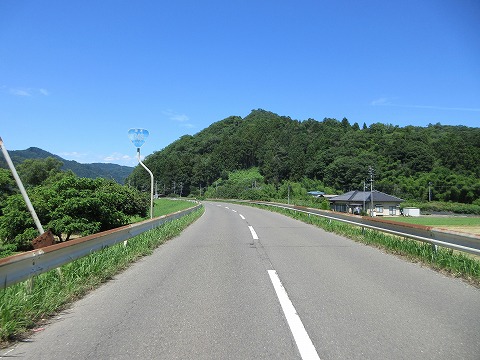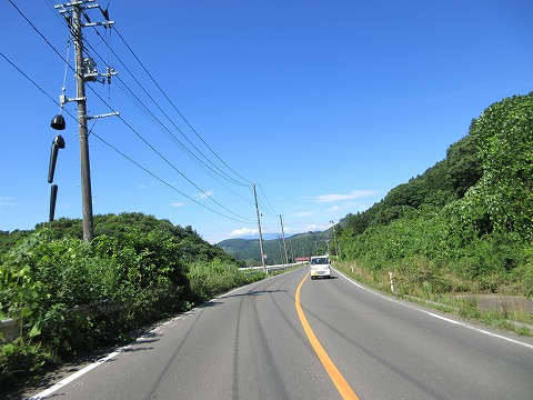 11:27 改良された区間は 国道459号線との重複区間化は離れ、349号線の単独区間の南下を続けます。 この辺りは、先の東日本大震災で全町非難をした浪江町の西側に位置する場所です。 福島県の海側の国道が通行出来ない時期があり、この辺りの国道は物資輸送のために改良された様です。 この区間の国道は、道幅も広く、カーブもゆったりしています。 ほとんどだれも歩くことが無いと思われますが、立派な歩道も設けられています。 写真の通り車道もクルマがほとんど走っておらず、快走路です。 |