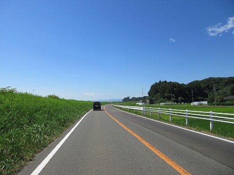 9:35 阿武隈川に沿って 国道349号線に入り南下をしています。 国道349号線は最初、阿武隈川の堤防に沿って走ります。 左手は堤防で、その向こうに阿武隈川が流れています。 センターラインのある片側1車線、対面通行の国道です。 この区間は緩いカーブのほぼ直線で構成されています。 前にクルマが居て、イエローラインなのでちょっと退屈です。 しばらく信号はないので、距離は進みます。 移動区間と割り切りましょう。 |