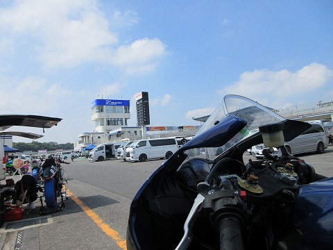 9:54 2本目の走行に向けて パドックをウロウロして、走行10分前になったので、CBRのところに戻ってきました。 エンジンをかけて、水温を上げておきます。 |