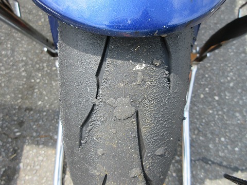 10:32 フロントは こっちはフロント側。 こっちも端まできれい。 フロントは、前回の走行よりもエアー圧を下げて、剛性感は減りましたが、まだPIRELLIよりもしっかり感はあります。 いずれにしても、この暑さの中、自分のレベルだとタイヤが垂れることもなく、無事に走り終わりました。 BSのR11の場合、フロントに荷重を載せてやると旋回性が上がるので、上手く特性を引き出す乗り方にしないとです。 タイヤの観察が終わったら、残ガス(ガソリンの残り)を計って、タイムを記録したら、片付けます。 |