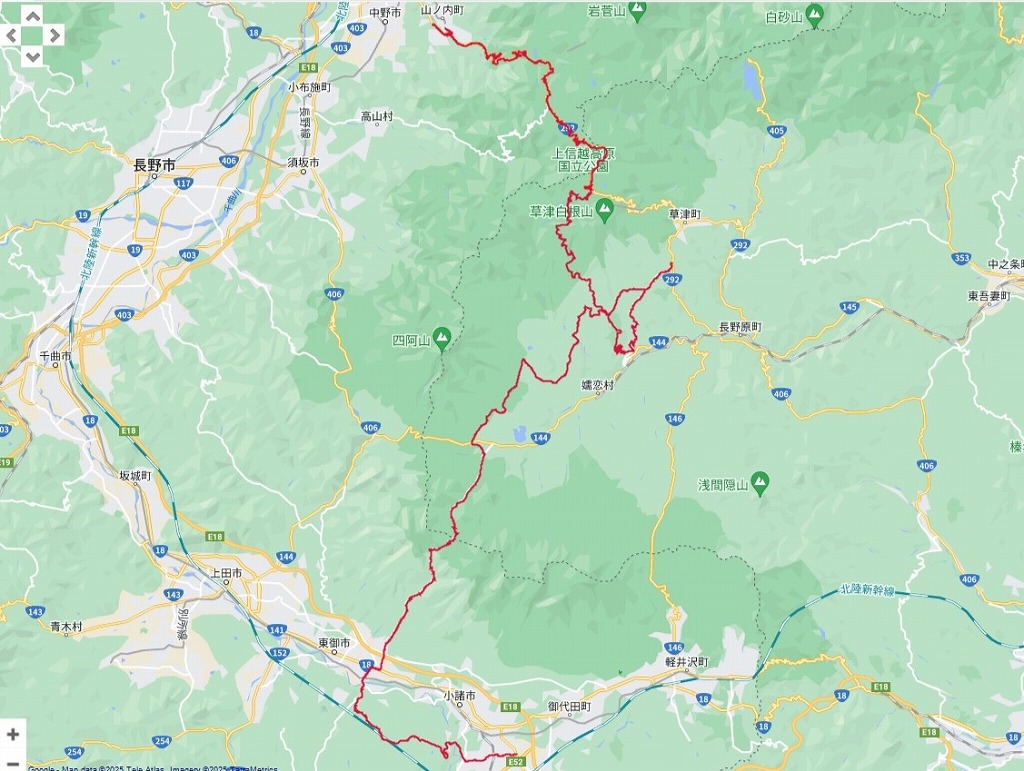 | 午後の道程:小諸市〜東御市〜湯ノ丸高原〜嬬恋村〜草津町〜万座ハイウエイ〜横手山・志賀高原〜湯田中温泉 :135.67km | |