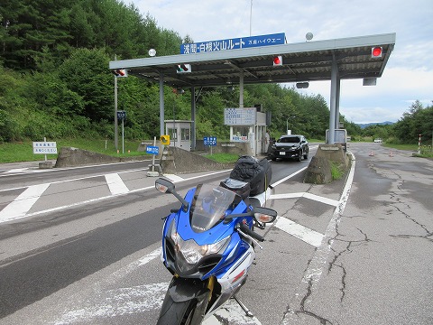 14:34 万座ハイウェイで 国道299のセブンイレブンから県道59号線を取って帰って、万座ハイウェイの料金所までやってきました。 雨は止んでいるんですけどね、路面はハーフウェット。 慎重に乾いたところを狙って走ります。 |