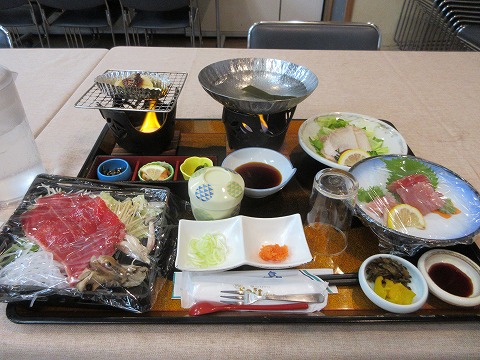 温泉に入って、部屋で缶ビールを飲んでいると夕食の時間になりました。