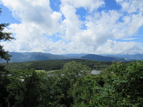 13:04 女神湖が見えたら 大河原峠から立科町方面に進み、終点が近づくと眼下にちょこっとだけ女神湖が見えてきました。 蓼科スカイラインもまもなく終点です。 |
