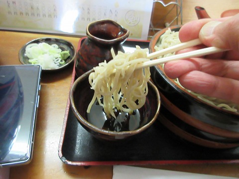 1130 最後はそば湯で 最後はそば湯で〆ます。 最初は、残ったくるみだれで割って。 くるみだれを飲んだら、そば湯だけで。 そば湯は、別製ではなく、実際にそばを茹でたゆで汁じゃないかな。 こってりしたポタージュの様なそば湯も美味しいですが、暑いときはさっぱりしたゆで汁の方が好みです。 |