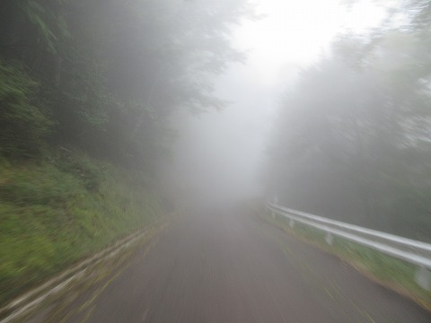 15:15 ガスの中 大河原峠で休憩した後、蓼科スカイラインを蓼科牧場方面に向け西走してます。 がっつり雲の中。 ガスの中。 クマが怖いので、少し視界が良くなってから写真を撮りました。(笑) こんなところでクマが出てきたら、どうしたらいいんでしょうね? なんて思考は止めよう。 |