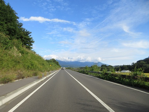 14:00 千曲ビューラインから 東御の市街地でガソリンを給油した後、行きも走った千曲ビューラインを逆に佐久市方面に向けて東進します。 目の前に見えるのは浅間山。 ここまで来てようやく山体を拝むことができましたね。 |