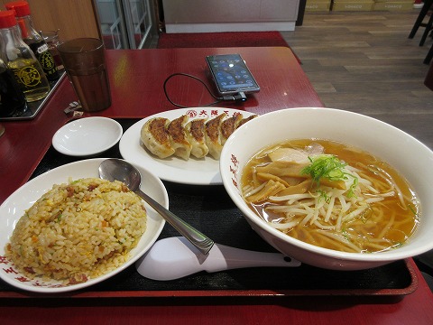 19:48 夕食は大阪王将 国道134号線経由で横須賀に戻り、アメリカ海軍横須賀海軍施設のゲート近くにある”大阪王将”で、夕食。 ここの”大阪王将”は駅から近くないし、駐車場も無いので、いつも比較的空いています。 潰れないか心配になっちゃいますが、自分の様な待つのが嫌いな人種には有難いお店です。 で、食べたのは王将ラーメンセット。 ラーメンにギョウザ、チャーハンと言うトリプル炭水化物のセットメニュー。 日本人は炭水化物好きだね。(笑) |