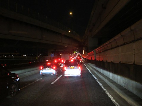 5:13 小菅JCTで 自宅からはいつもと同じルートで、幸浦 ICから首都高速湾岸線に上がり、葛西JCTから首都高環状線。 小菅JCTの手前で事故渋滞に遭遇。 時間をロスしちゃうな。(-_-;) |
