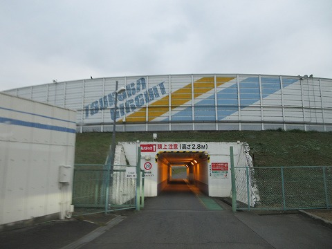 6:12 筑波サーキットに 約10分遅れで筑波サーキットに到着。 1コーナー下の地下トンネルをくぐって、インフィールドに入ります。 |