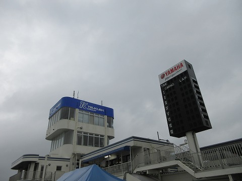 7:00 定点観察 7時になり走行券の販売時間になりましたので、コントロールタワー脇に買いに行きます。 向かう途中、いつもの場所から定点観察。 完璧に雲です。 でも、雲自体はそんなに厚くなさそうですが。 |