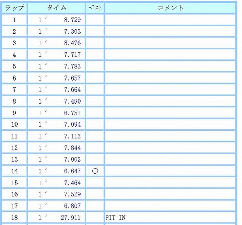 9:40〜10:00 B2クラス ブレーキパッドを交換し、9時40分になったら今日2本目の走行の開始です。 1本目の走行でコースインするときの路面温度は7℃でしたが、今コースインするときの路面温度は16℃だったので、寒くてグリップしないことは無いですね。 そしてブレーキパッドも交換したので、余計な雑念もないし・・・・? でも、無理せずに行きます。 前回9月に走った時はまだ暑さが残っていましたが、今回涼しくなってエンジンがパワフルに良く回ります。 そして、少しずつペースアップして、14周目に本日のベスト 6秒6。 やっぱり遅い。 気温が下がって、タイヤのグリップ感が少し薄くなった感じですが、滑ることはありませんでしたね。 ちょっとビビり過ぎているのかもしれませんね。 残念ながら5秒台に入れられませんでした。 |