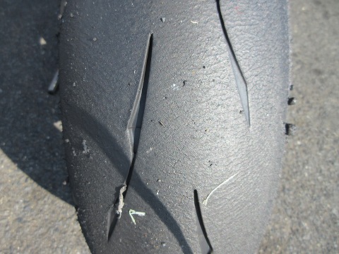 10:18 走行後の リヤタイヤの表面は、きれいなもんだね。 タイヤ的にはもう少し寝かせられる様だけど、どうなんだろう? 路面温度が低いので、やたら寝かせるのもね。 寝かせないで走れるように、走ろう。 走れるかな。 |