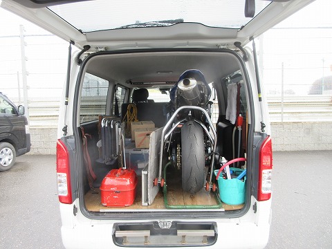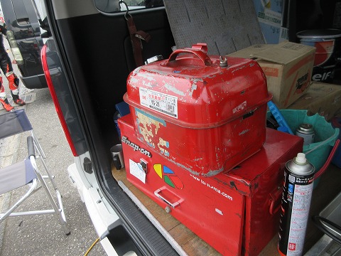 10:36 ピットに戻って チェッカーを受けて、ハイエースの所に戻ってきました。 とりあえず、2本の走行が終わりました。 今日は3本あるんですが、雲行きが怪しくなってきました。 ガソリンは2走行分しか買わなかったので、次の走行分のガソリンを買ってこなきゃならないんですが、ちょっと保留。 |