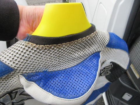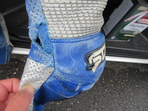用件は 立ち寄った用件は、これ。 つなぎの二―グリップする部分に、秋ごろに穴が空いちゃいました。 これの修理。 サーキット用のCBRはタンクが滑らない様に”ストンプグリップ”って言う滑り止めが貼ってあります。 ストンプグリップには滑らないように表面に突起があって、これがつなぎに対して少し攻撃性があるんですね。 長年使っていたら、穴が空いちゃった次第。 |