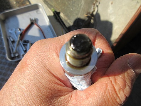 10:49 外したドレンボルトは 取り外したレンボルトの頭。 ピンぼけしてるけど。 ドレンボルトは磁石が付いた社外品。 頭のマグネットに鉄粉が付着して、真っ黒。 これを見ちゃうと、マグネット付きに変えといて良かった。って思います。 (グロムはペーパー式のオイルフィルターが無いですからね) |