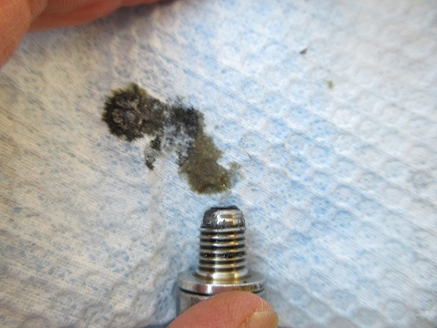 10:49 真っ黒 ペーパーウェスにドレンボルトを擦りつけると、鉄粉がベットリ。 真っ黒け。 (>_<) |