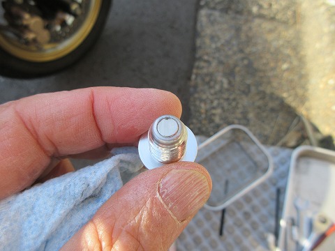 10:51 ピカピカ 鉄粉を取ったら、パーツクリーナーで掃除して、きれいにピカピカ。 ドレンワッシャーも新品に交換するので取り外しておきます |