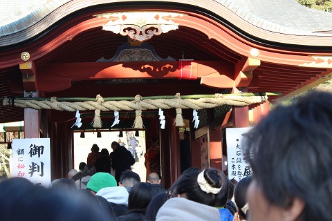 15:21 お参りします。 本宮の入口から、先に進みます。 この先でみんなお参りをしているので、なかなか進みません。 ますが、撮影禁止なので、写真はここまで。 デジカメの撮影時間のデータを確認したら50分くらいかかってますね。 去年は午前中で40分ぐらい並んだので、正月2日は午後の方が少し混んでいるのかな。 |